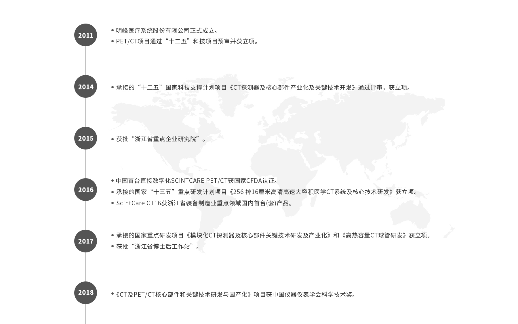 公司擁有上百項世界先進的專利技術,被評為“浙江省引進培育領軍型創(chuàng)新創(chuàng)業(yè)團隊”、省級重點企業(yè)研究院—“浙江省明峰核醫(yī)學影像系統(tǒng)研究院”、浙江省博士后工作站,入選國家級專精特新“小巨人”企業(yè)。先后承擔國家“十二五”“十三五”“十四五”多個重點研發(fā)計劃項目。