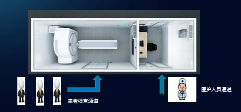 同時具有面積大、標(biāo)準(zhǔn)CT機(jī)房(60平方),可分污染區(qū)和半污染區(qū),可放置DR等特點(diǎn)。