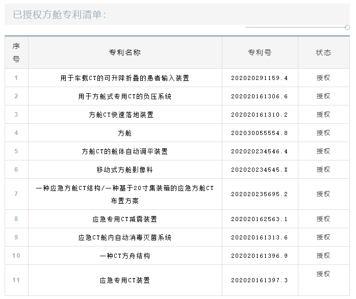 截止目前,明峰醫(yī)療方艙CT系列已獲得11項(xiàng)專利,還有更多專利項(xiàng)目正在審批過程中。