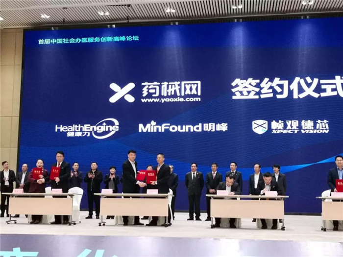 現(xiàn)場(chǎng),在領(lǐng)導(dǎo)、嘉賓和客戶的見證下,明峰醫(yī)療、央企國宜盛世集團(tuán)、華為云、順豐物流、廈門國際銀行、健康力、深圳幀觀德芯以及廈門中藥廠,各戰(zhàn)略合作客戶簽約代表分別與藥械網(wǎng)一一簽訂了戰(zhàn)略合作協(xié)議。