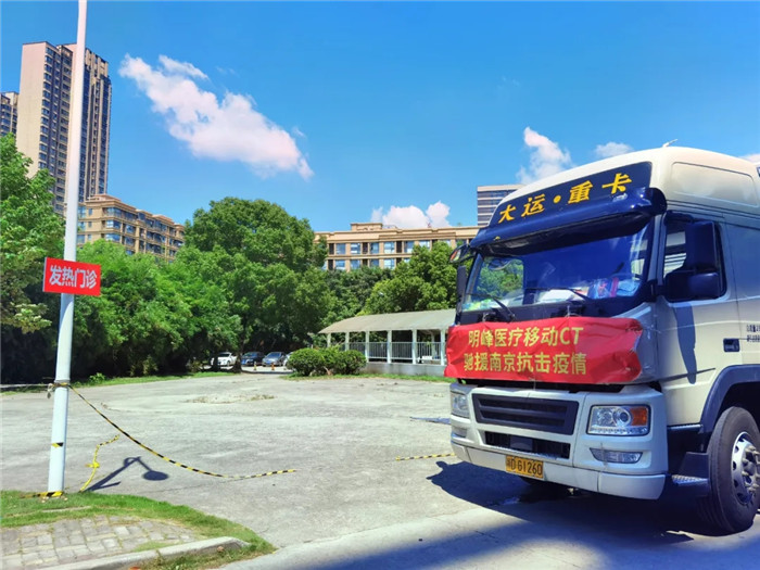 7月31日,明峰醫(yī)療再次得知,南京市政府相關部門急需采購一臺車載移動CT用于新冠確診患者定點治療醫(yī)院:南京市公共衛(wèi)生醫(yī)療中心,要求3天內(nèi)到貨。明峰醫(yī)療緊急行動,多方協(xié)調(diào),最終在8月2日晚將車載CT運達南京市公共衛(wèi)生醫(yī)療中心。目前,設備已經(jīng)基本完成調(diào)試,即將投入臨床使用。